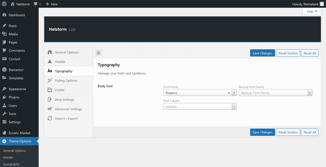 The typography of the theme is already designed. However, if you need to venture out and create new design ideas using fonts in different sizes and weights, just configure it your way. The available options are: